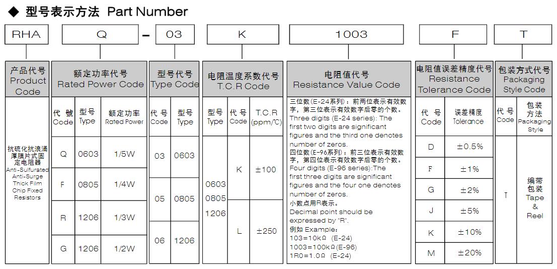 風(fēng)華高科抗硫化抗浪涌厚膜片式固定電阻器 型號(hào)命名規(guī)則:
