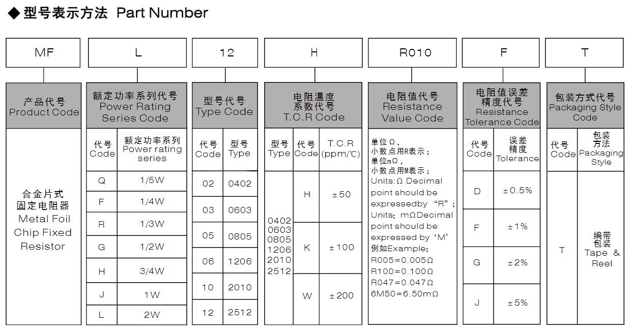 風華高科合金片式固定電阻器型號命名規則: