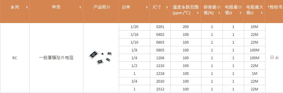 產品系列:國巨常規厚膜電阻RC系列