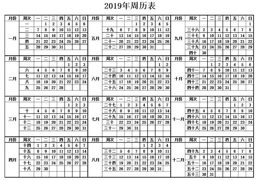 19:代表第19周。 看哪年周歷表